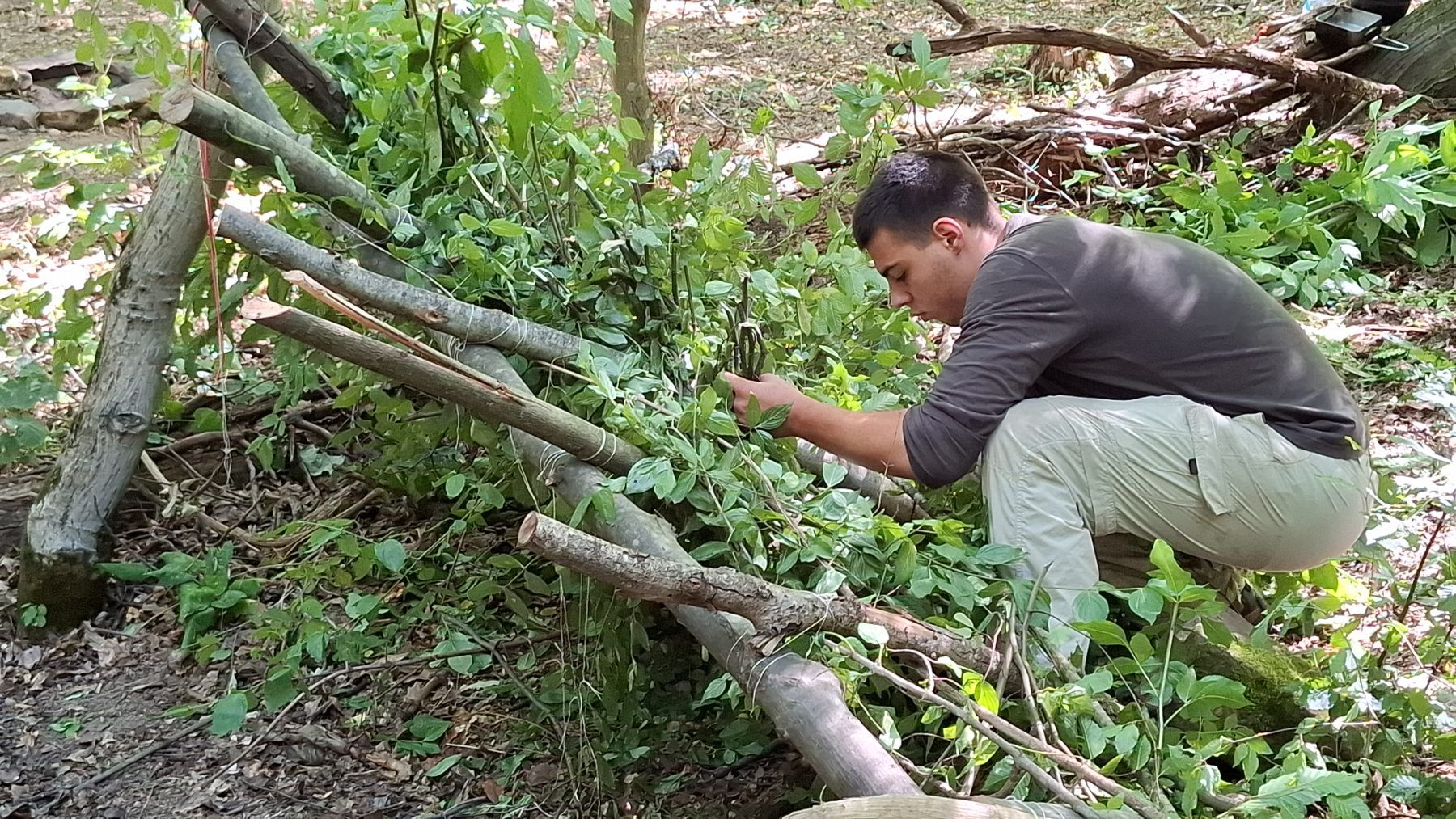 - Започни с простите варианти: едноскатен, двускатен, подслон с брезент, подслон с отломки от листна маса и други.